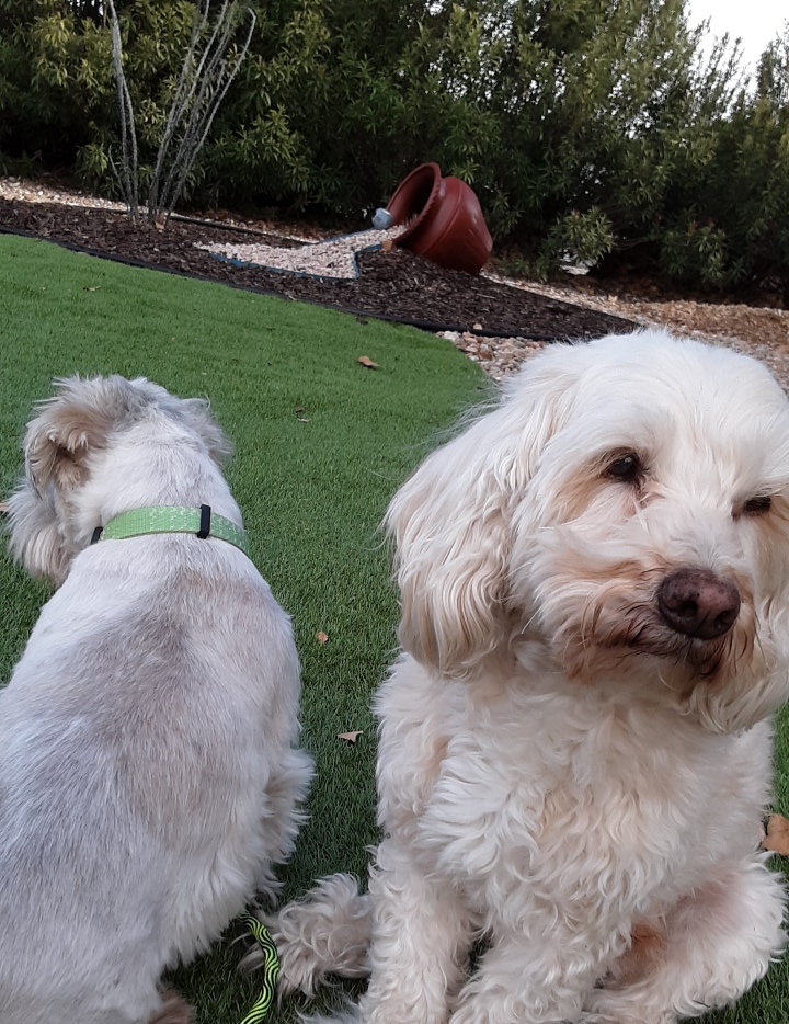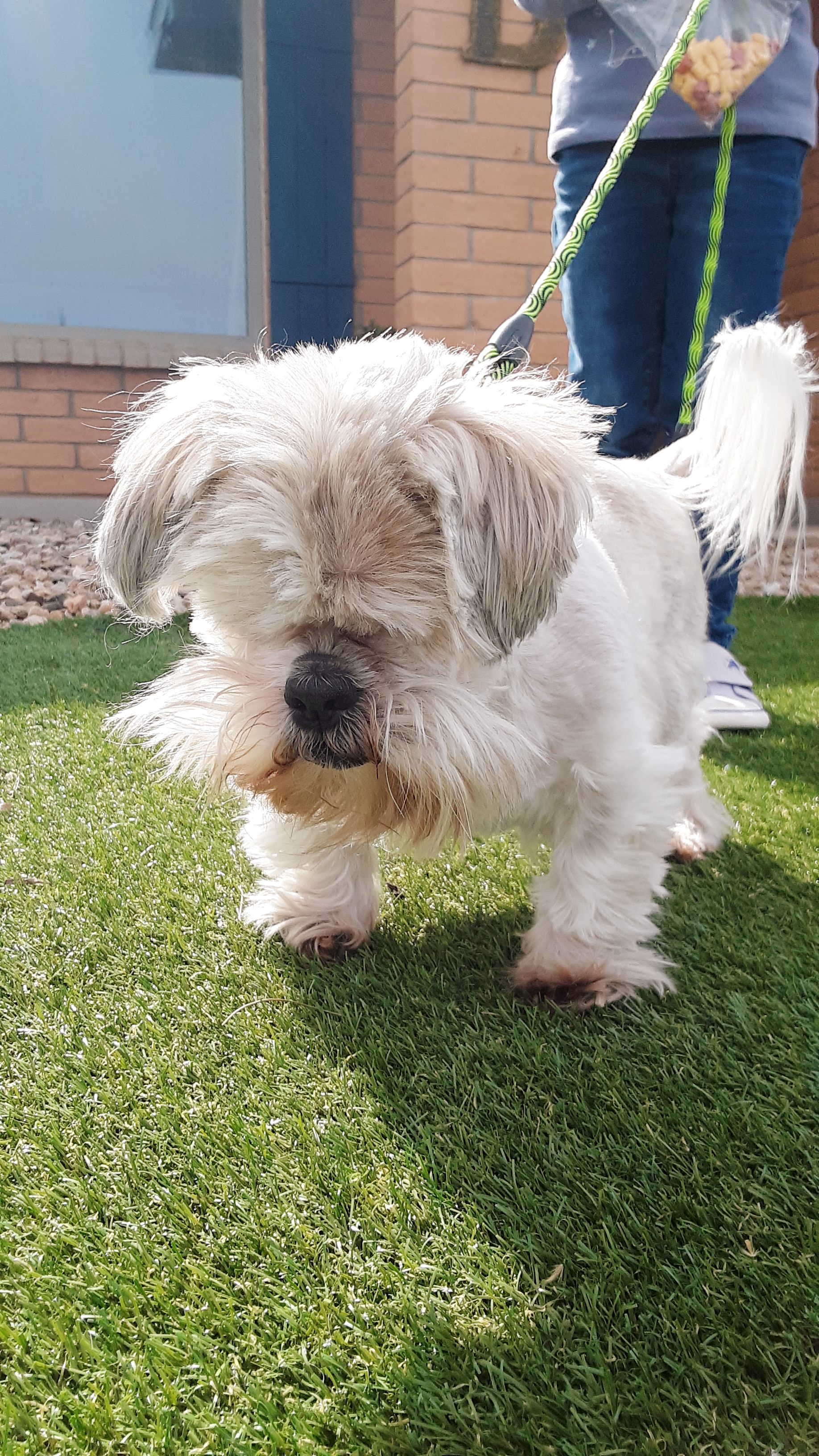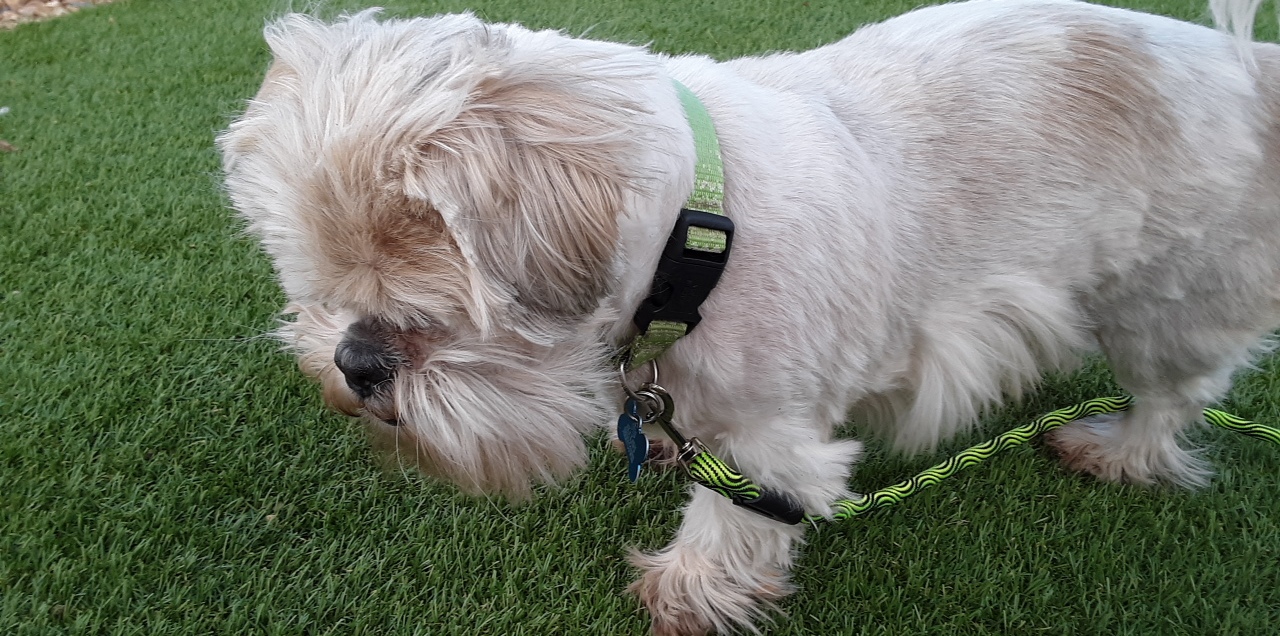 We did a very small amount of “curb” practice today as well and he did great! We practiced “step up” with a slight twitch of the leash and ” step down” with a twitch of the leash. I couldn’t believe how well he did! I’m so proud of this little “butterball”. 😁 P.s. he loves the feel of the turf in our yard on his feet.