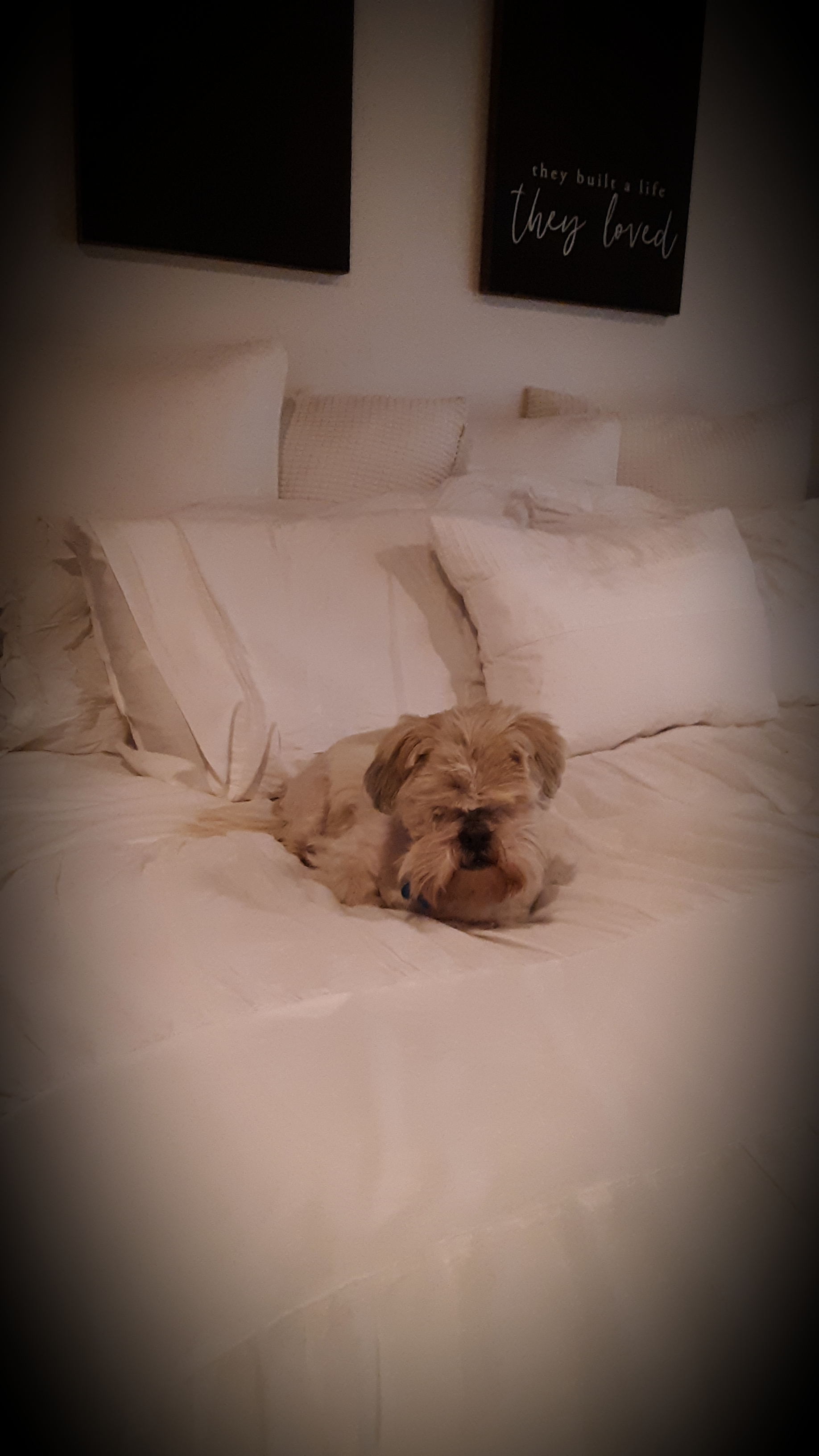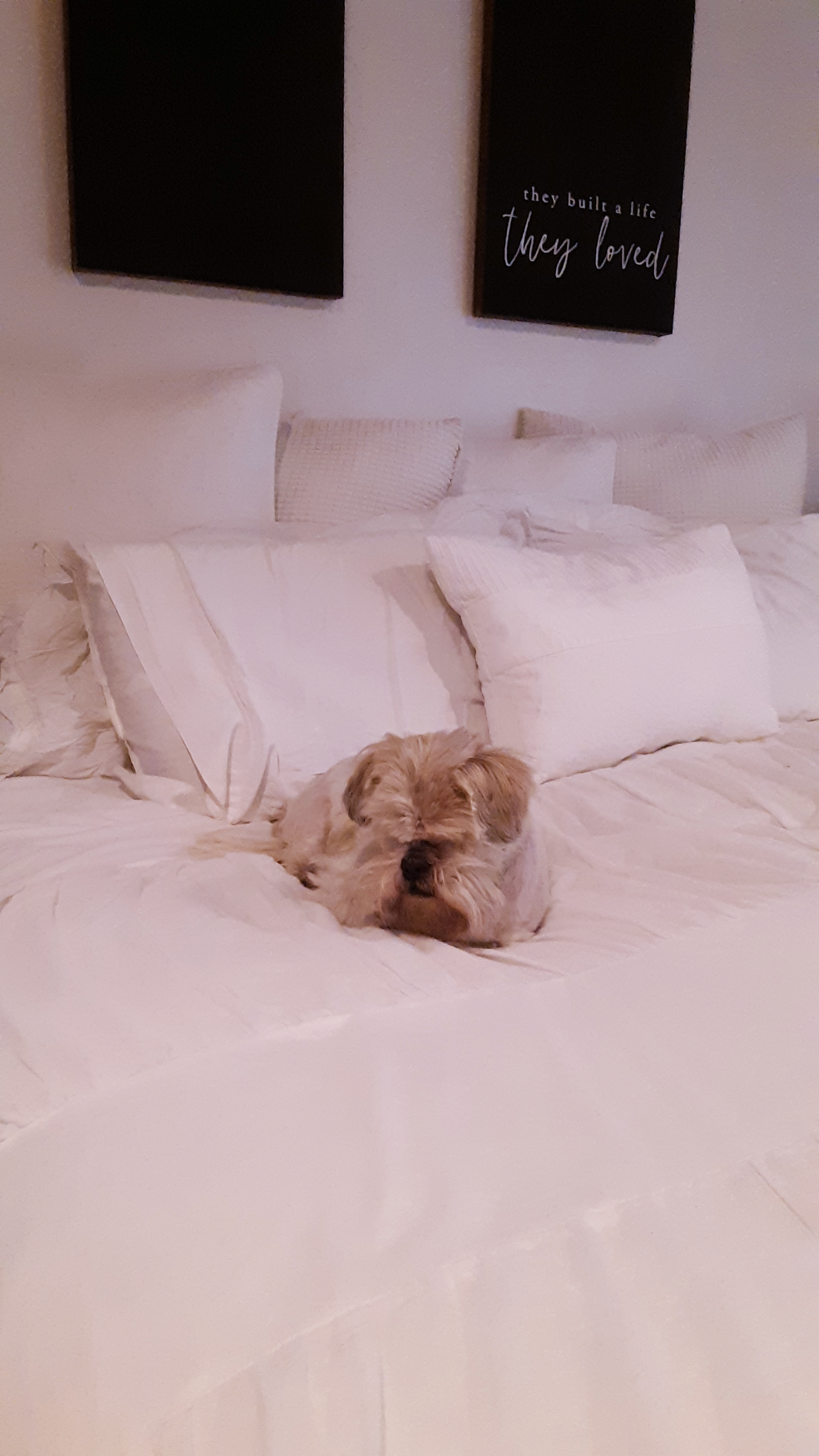 Otis did some exploring around the house today and I’m pretty sure he generally knows how to get from the front door to the master bedroom(his room) and living room that also has a dog bed and his dishes. He even managed to come find me at the washer and dryer (so proud of this little guy)!